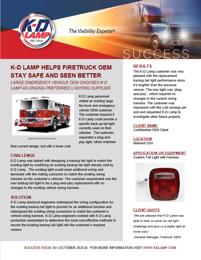 LARGE EMERGENCY VEHICLE OEM CHOOSES K-D LAMP AS ONGOING PREFERRED LIGHTING SUPPLIER