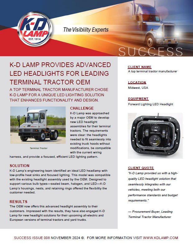 K-D LAMP PROVIDES ADVANCED LED HEADLIGHTS FOR LEADING TERMINAL TRACTOR OEM